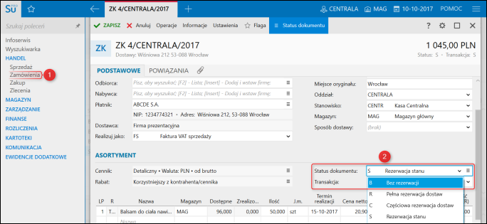 W innym przypadku trzeba sprawdzić, czy dany asortyment nie jest zarezerwowany lub zadysponowany. Aby to sprawdzić, należy: