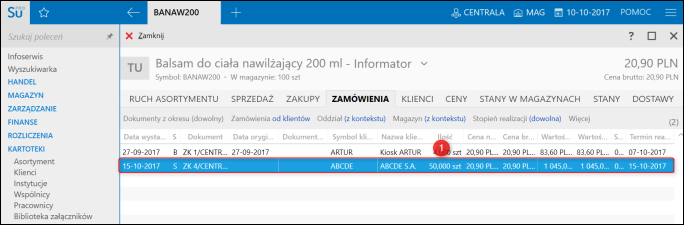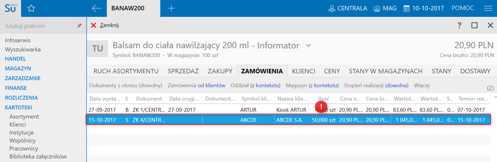 2. Sprawdzić, z jakiego dokumentu zamówienia pochodzi zarezerwowany towar z poziomu górnego menu Operacje – Informator.