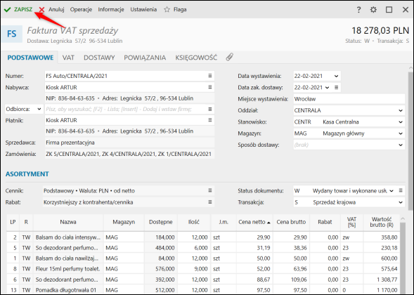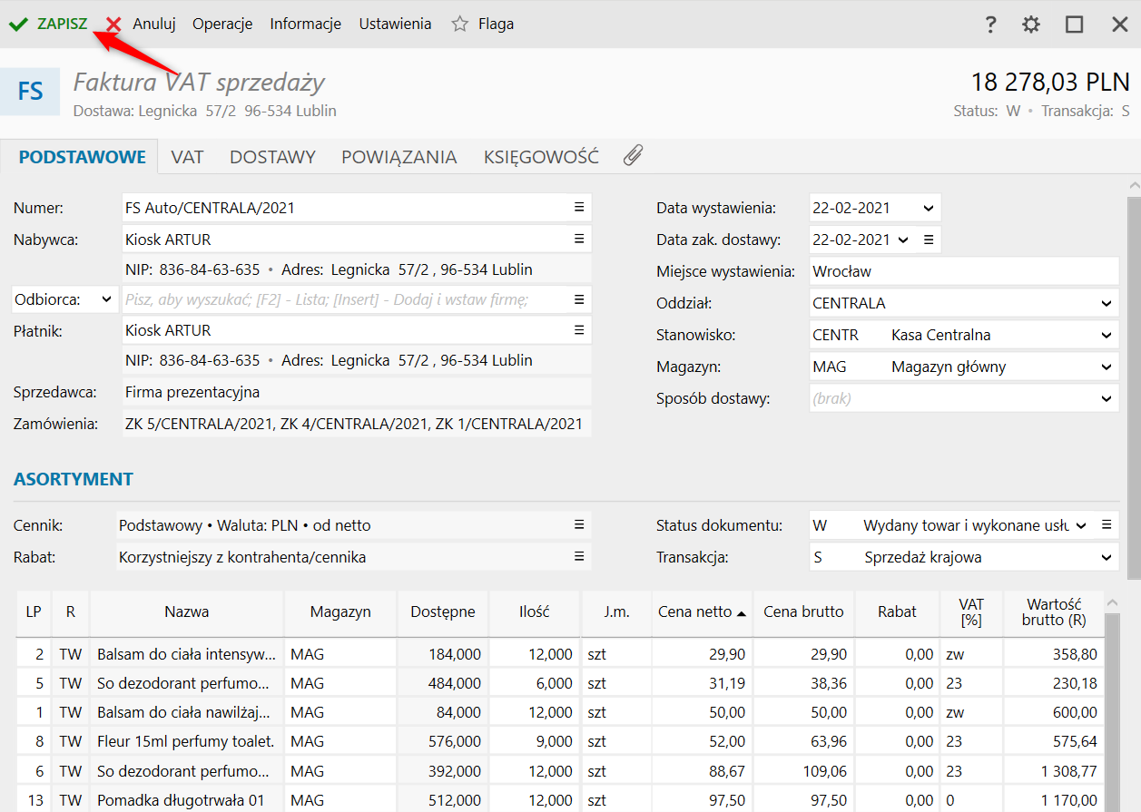 3. Zweryfikować dane na dokumencie i zatwierdzić przyciskiem Zapisz.