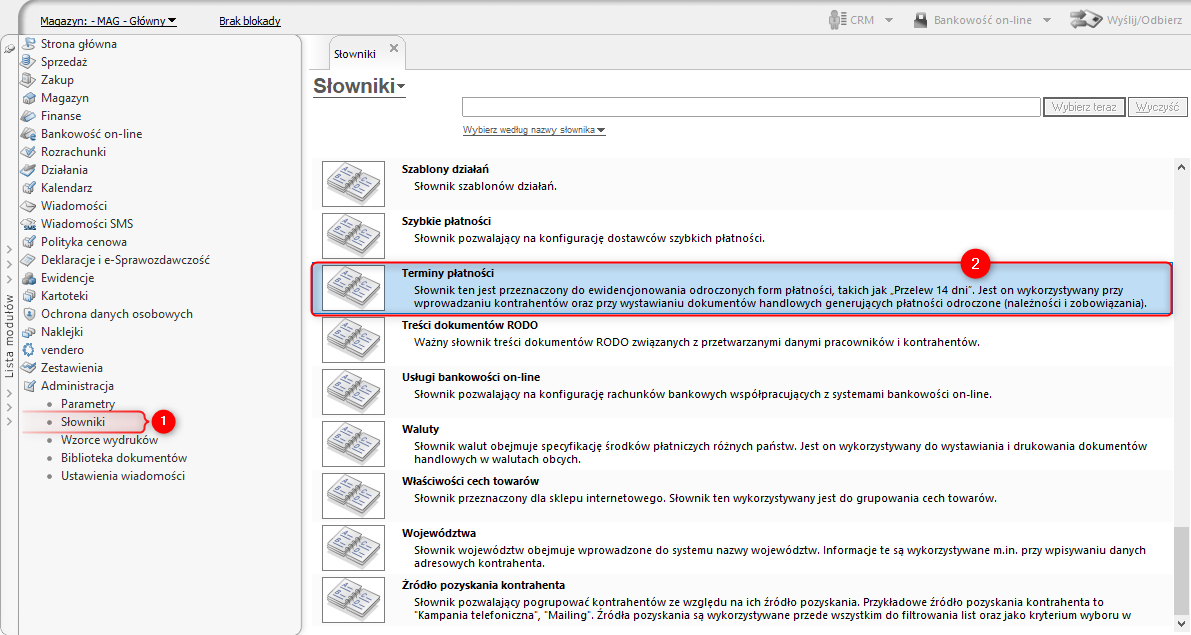 1. Wejść do słownika Terminy płatności, który znajduje się w module Administracja – Słowniki.