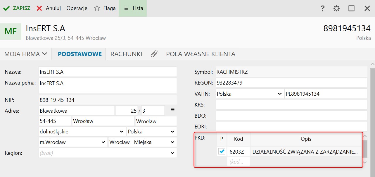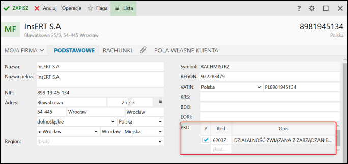 InsERT nexo – Jak wprowadzić kod PKD (Polska Klasyfikacja Działalności)?