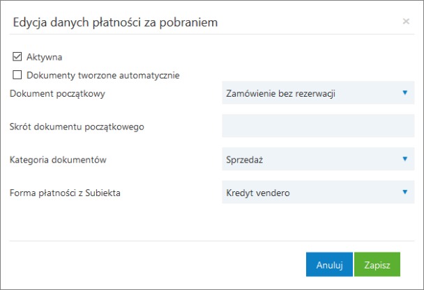 - wybrać, czy forma płatności jest aktywna (bez wskazania tego znacznika klient kupujący w sklepie vendero nie będzie w stanie wskazać wybranego sposobu zapłaty);