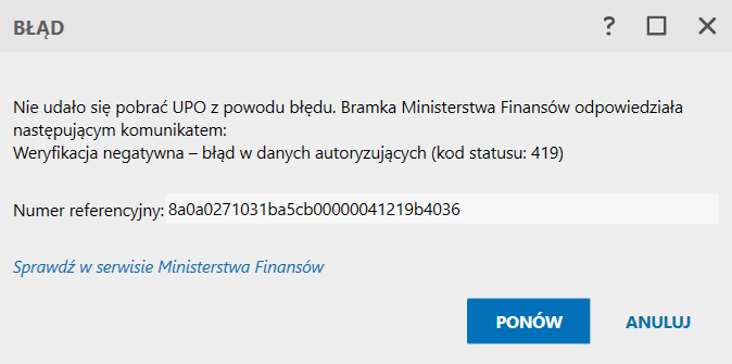 Jeżeli wystąpi poniższy błąd, należy zweryfikować dane wprowadzone w kroku 2 i ponowić wysyłkę.