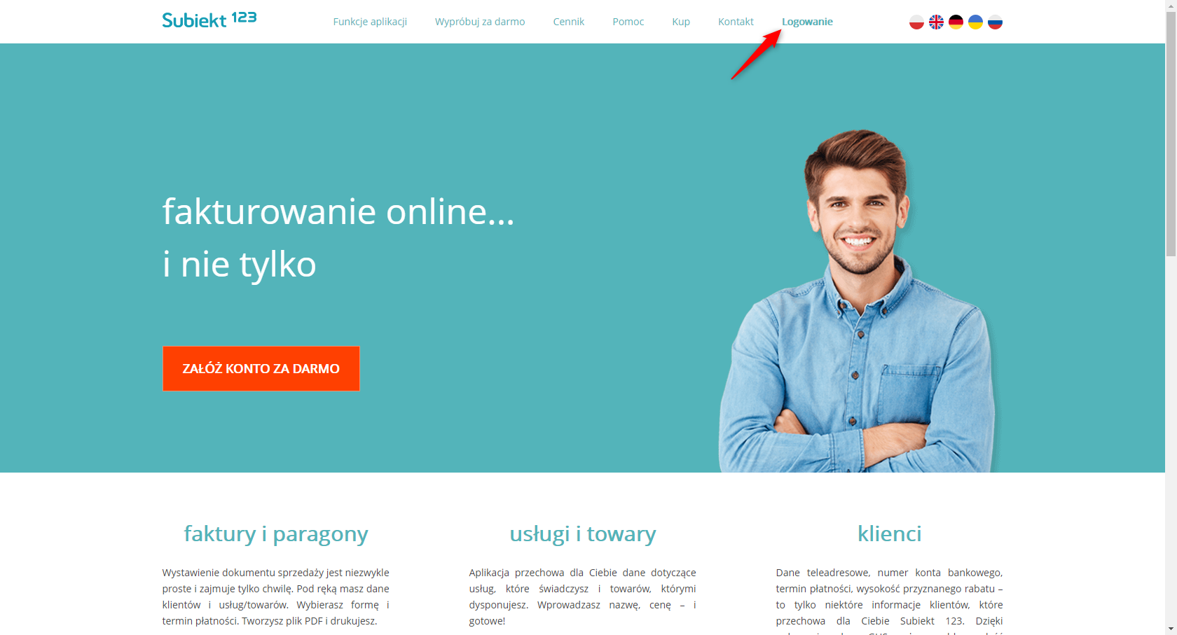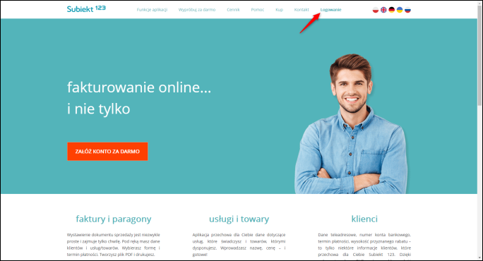 ​1. Przejść na stronę produktu, a następnie z górnego menu wybrać Logowanie.