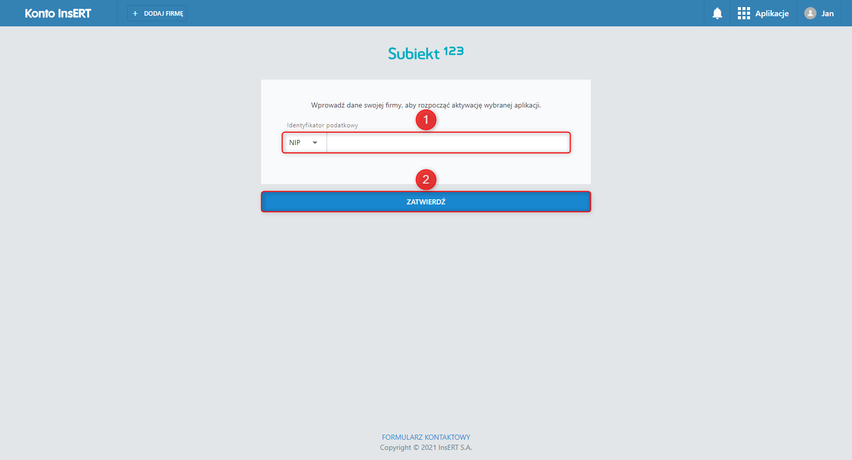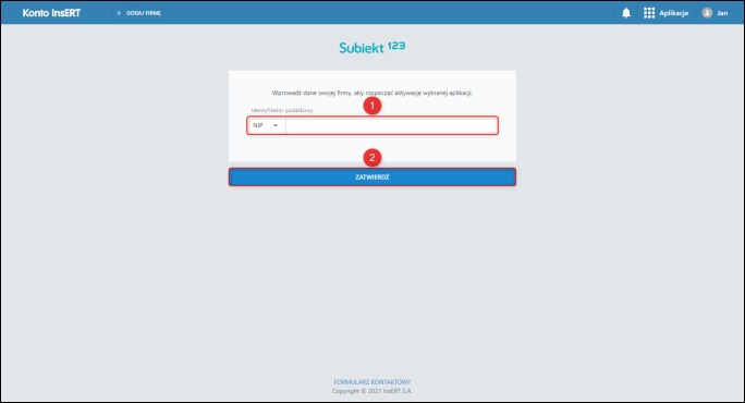 3. Wprowadzić Identyfikator podatkowy i kliknąć Zatwierdź.