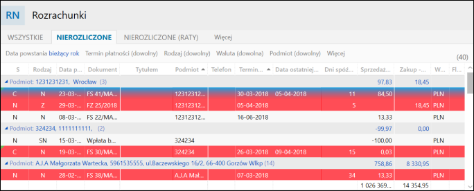 W programach linii InsERT nexo istnieje możliwość wyróżnienia wierszy np. poprzez oznaczenie kolorem wybranych rozrachunków. Służy do tego opcja formatowania warunkowego.