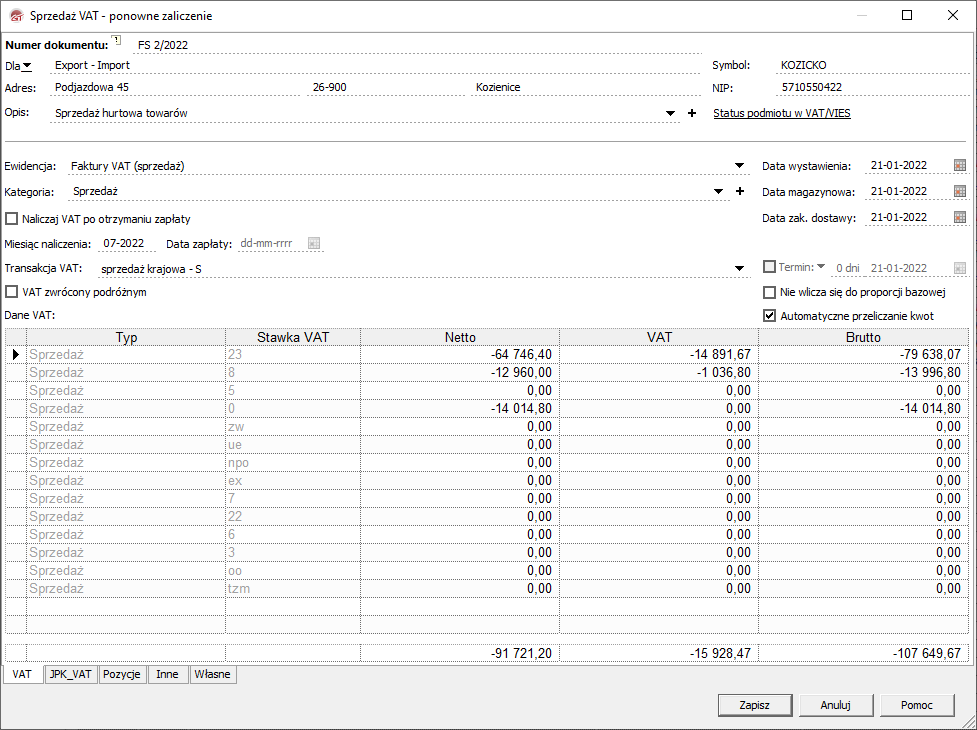 Kategoria: Ewidencje VAT