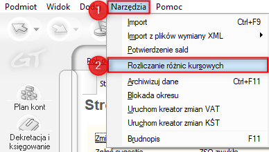 1. Z górnego menu programu wybrać Narzędzia  Rozliczanie różnic kursowych.