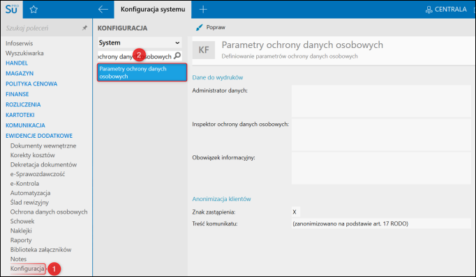 InsERT nexo – Konfiguracja podstawowych parametrów dot. ochrony danych osobowych