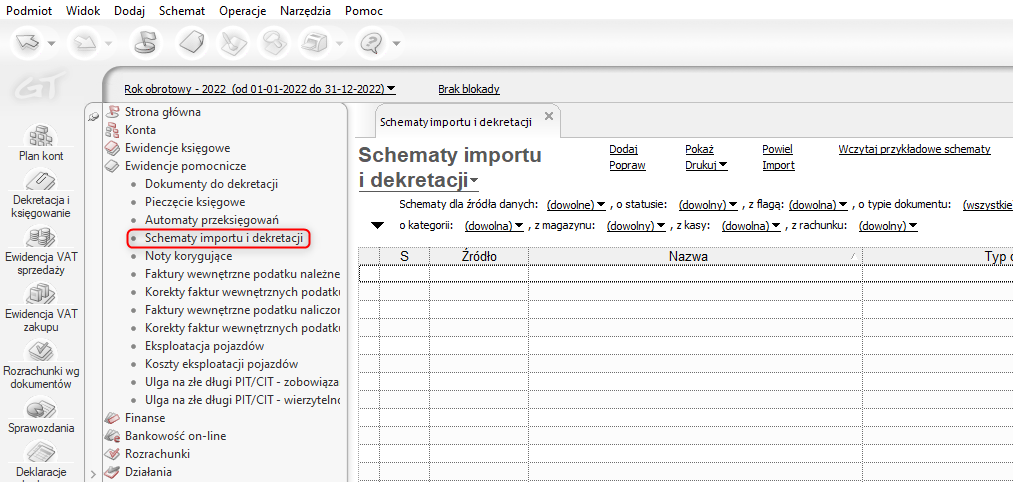 5. Gdzie odnaleźć gotowe podstawowe schematy importu i dekretacji?
