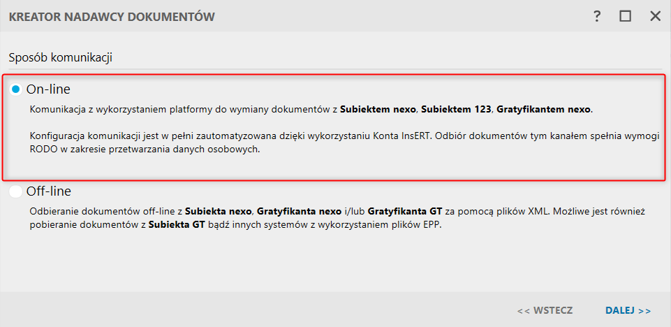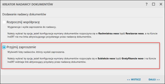 W programach Rachmistrz nexo oraz Rewizor nexo istnieje możliwość konfiguracji odbioru dokumentów online z Subiekta/Gratyfikanta nexo z otrzymanego zaproszenia. W tym celu należy: