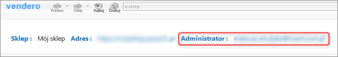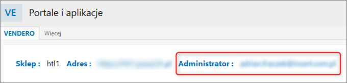 Należy przejść do modułu Komunikacja - Portale i aplikacje, na zakładce vendero i odczytać dane z pola Administrator.