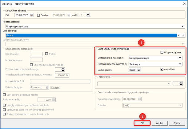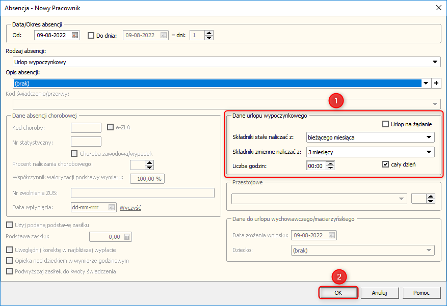 Kategoria: Absencje, Parametry, Wynagrodzenia