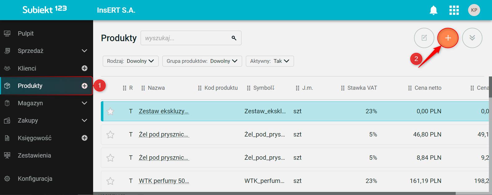 1. Przejść do modułu Produkty i kliknąć ikonę dodawania produktu.