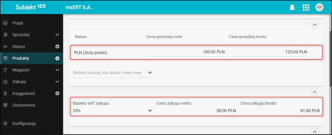 4. Kolejno określić Ceny sprzedaży oraz zakupu.