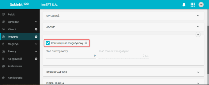 Uwaga! Aktywacja kontroli stanów magazynowych danego produktu jest nieodwracalna.