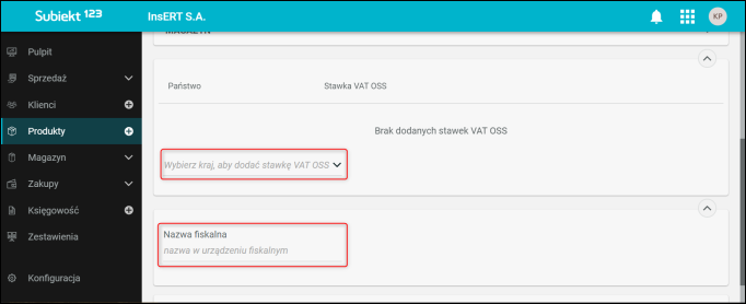 6. Następnie będzie możliwość określenia stawek VAT OSS oraz Nazwy fiskalnej.