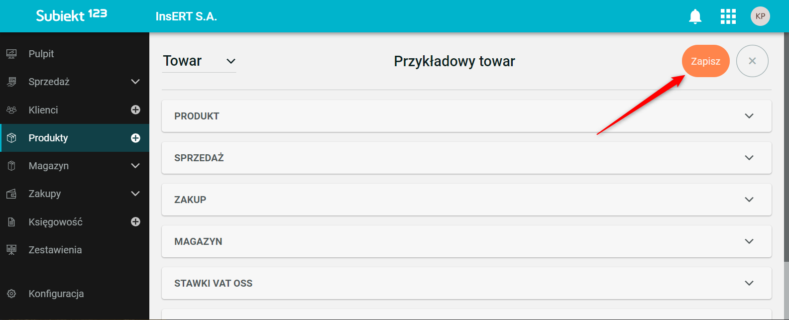 8. Po wprowadzeniu niezbędnych danych zatwierdzić dodawanie produktu przyciskiem Zapisz.