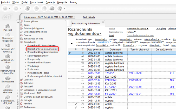 Rozrachunki wg dokumentów