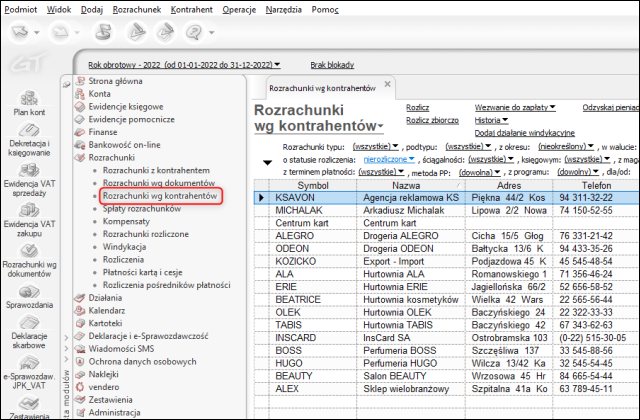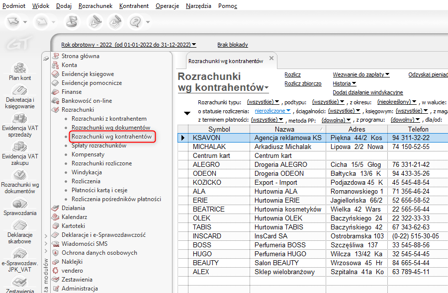 Rozrachunki wg kontrahentów