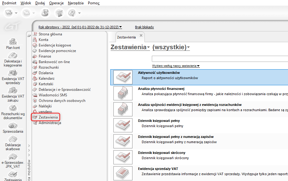 Kategoria: Rozrachunki, Zestawienia