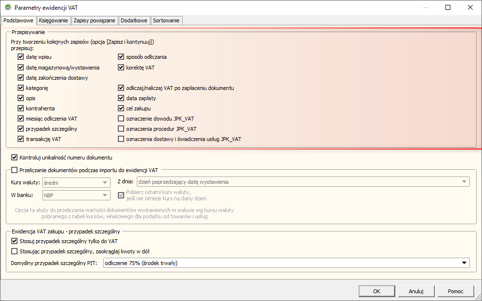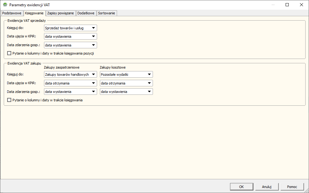 Kategoria: Ewidencje VAT, Parametry