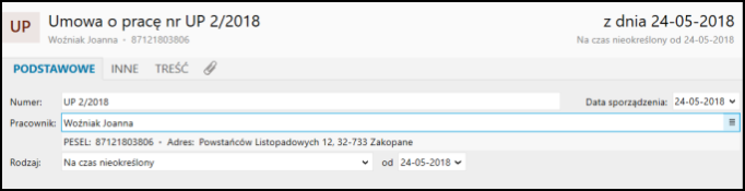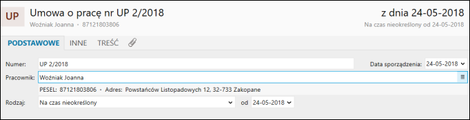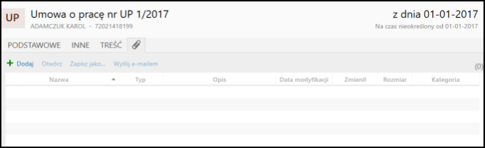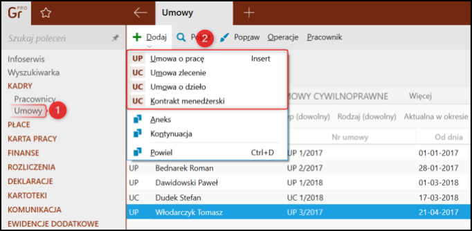 W tym artykule zostanie opisana procedura dodawania umowy o pracę. W tym celu należy: