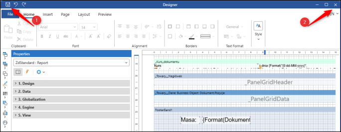 10. Zapisać stworzony wzorzec i zamknąć okno programu Stimulsoft.