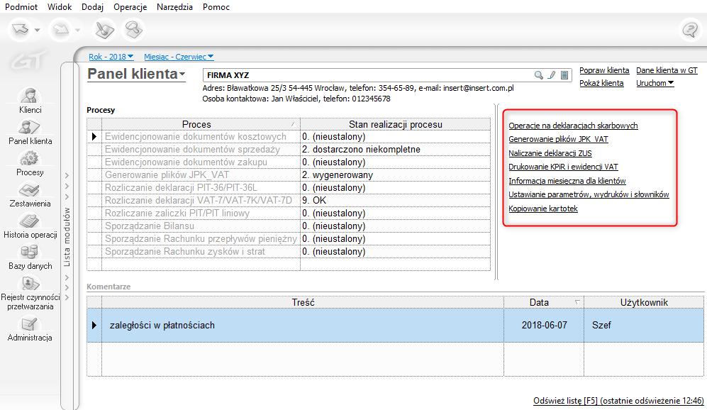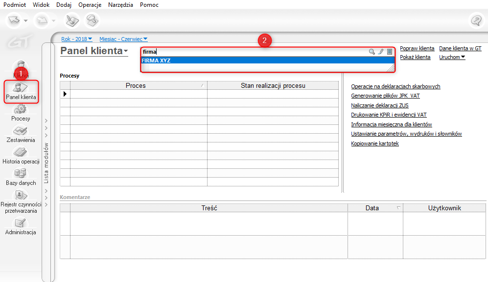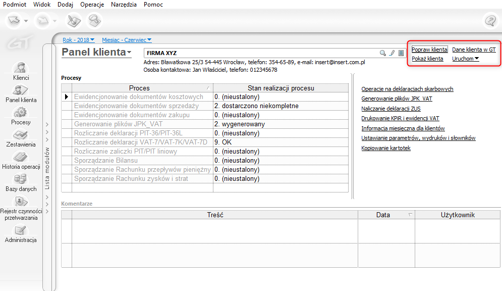Panel klienta w programie Biuro GT