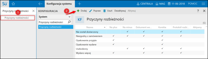 ​Program Subiekt nexo umożliwia dodanie własnych przyczyn rozbieżności towaru znajdującego się na dokumencie, czyli kierunków rozbieżności na plus lub na minus. W tym celu należy: