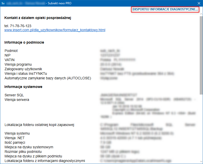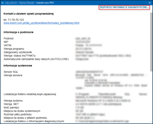 InsERT nexo – Jak wygenerować dane diagnostyczne?