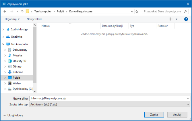 Skopiować plik bezpośrednio z dysku. Pliki z informacjami diagnostycznymi znajdują się w następujących lokalizacjach: