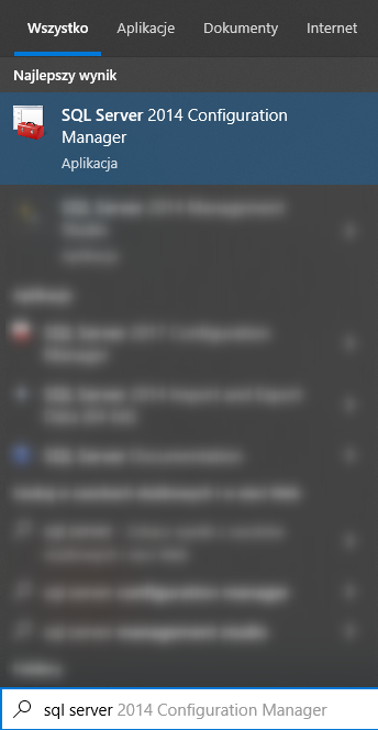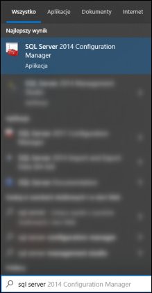 2. Odszukać i uruchomić menu Start Wszystkie aplikacje (w starszych systemach Programy) Microsoft SQL Server 2014/2016 (w zależności od posiadanej wersji serwera SQL) – SQL Server 2014/2016 Configuration Manager.