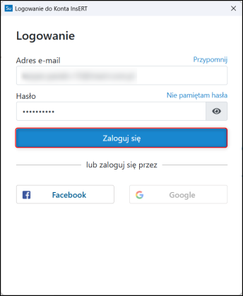 3. W zależności od tego, c​​zy Konto InsERT zostało już założone, skorzystać z opcji Zaloguj się bądź Załóż Konto InsERT. W przypadku logowania można przejść do punktu 10​. Na potrzeby przykładu założone zostanie nowe konto.