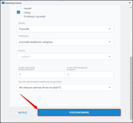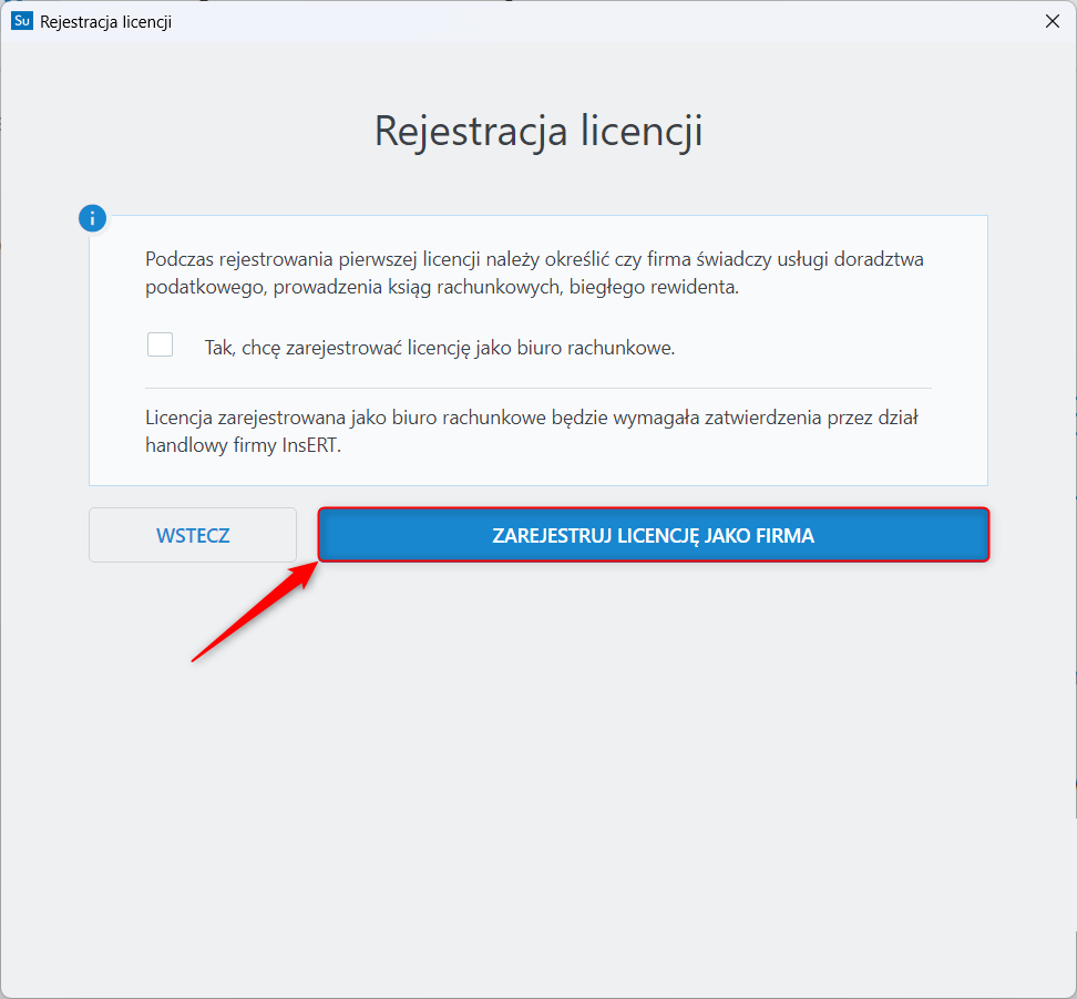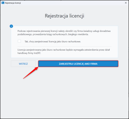13. Zdecydować, czy rejestracja licencji dotyczy firmy, czy biura rachunkowego. Na potrzeby przykładu licencja zostanie zarejestrowana jako firma.