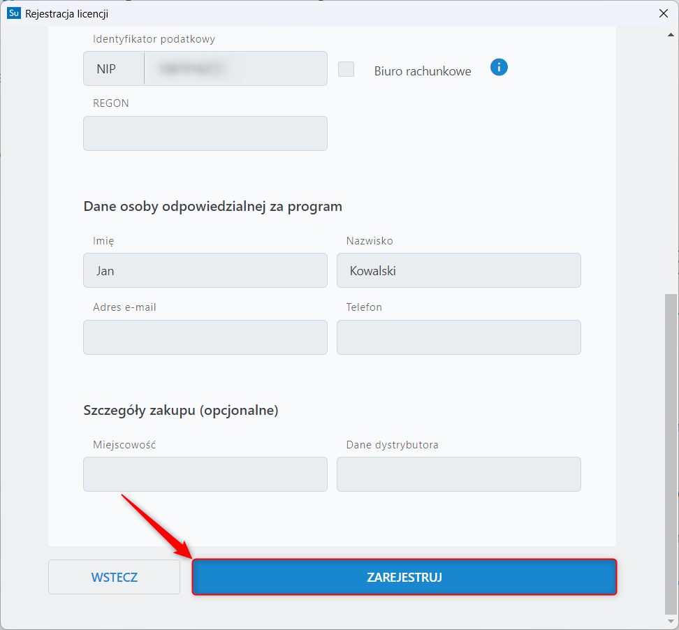 Opis pierwszej rejestracji licencji biura rachunkowego można od​​naleźć w innym temacie e-Pomocy technicznej TUTAJ.