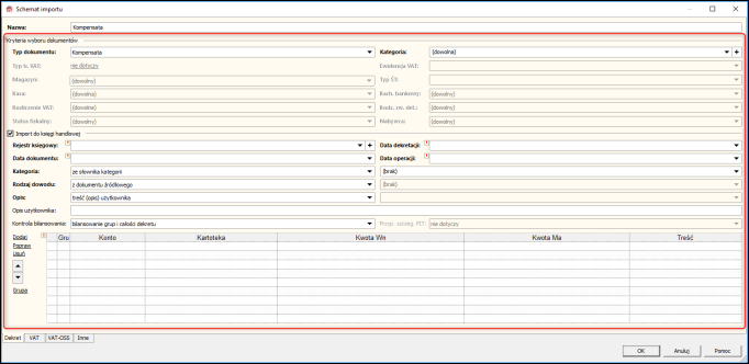 Rewizor GT – Konfiguracja przykładowego schematu importu kompensaty
