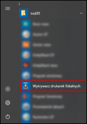 1. Odszukać i uruchomić menu Start – Programy lub Wszystkie aplikacje (w zależności od wersji systemu Windows) – InsERTWykrywacz drukarek fiskalnych.