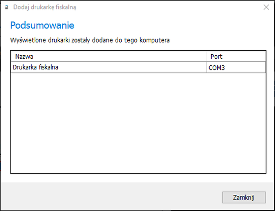 5. Zostanie wyświetlona informacja o dodanych drukarkach. Zamknąć okno.