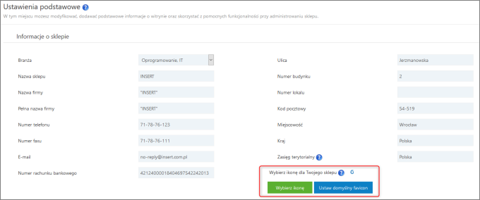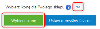 W prawym dolnym rogu pierwszego wyświetlonego menu pojawi się opcja Wybierz ikonę dla Twojego sklepu, przy której znajdują się dwa przyciski - Wybierz ikonę oraz Ustaw domyślny favicon.