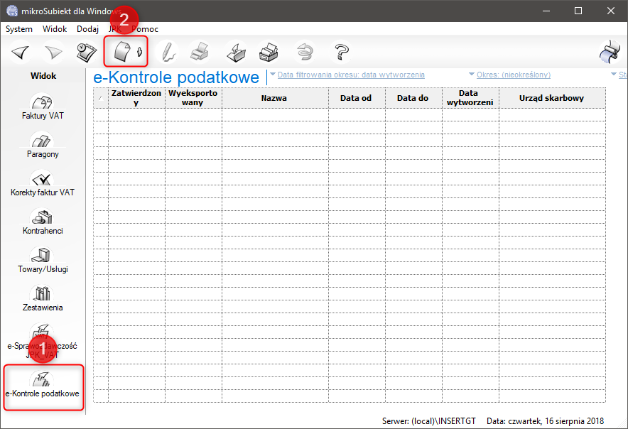 Aby wygenerować dla kontroli podatkowej plik JPK_FA w programie mikroSubiekt, należy: