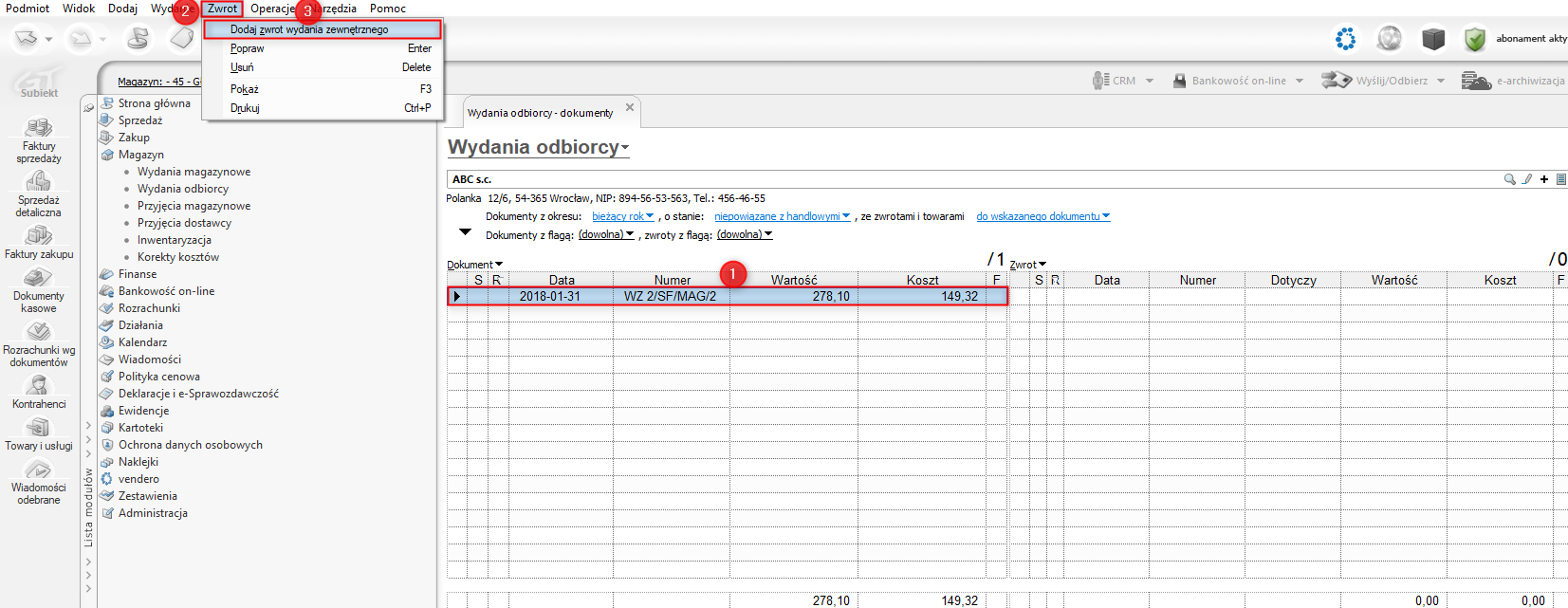 Subiekt GT – Jak wystawić zwrot wydania zewnętrznego?