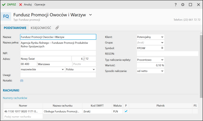 Subiekt nexo obsługuje naliczanie kwot na poszczególne fundusze promocji.