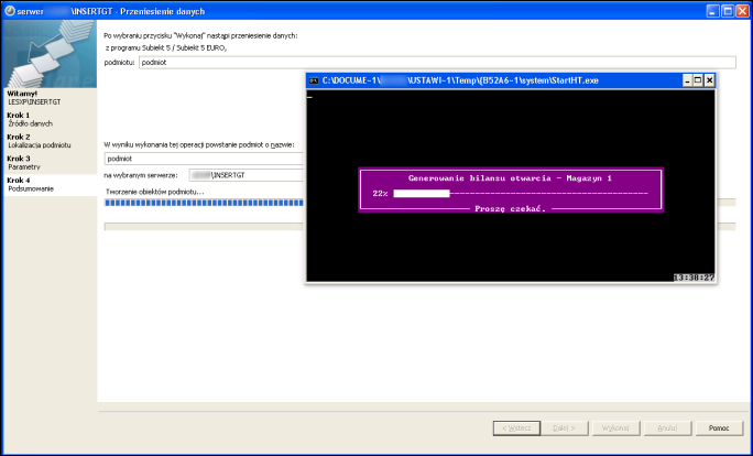 8. Rozpocznie się proces przenoszenia danych do systemu InsERT GT.
