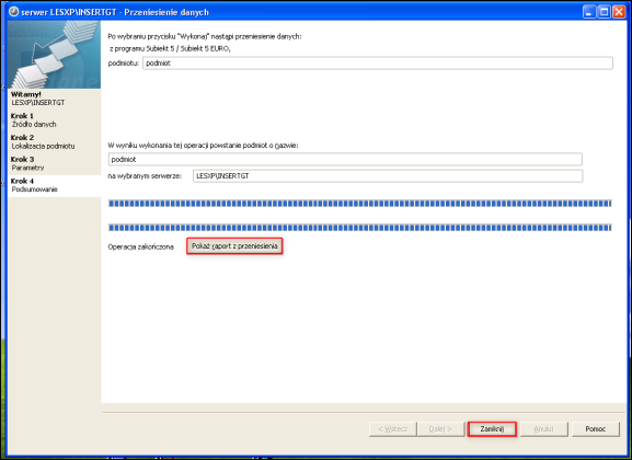9. Po przeprowadzeniu operacji można wyświetlić raport z przeniesienia.
