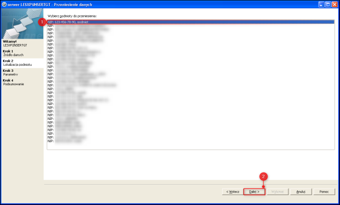 5. Zaznaczyć dane, które mają zostać przeniesione.
