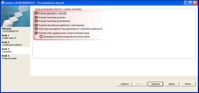 Uwaga! Część danych jest w systemie InsERT GT zapamiętywana w zupełnie inny sposób, niż było to w systemach starszych. Z tego powodu nie wszystkie dane zostaną przeniesione! Artykuł opisujący zakres przenoszonych danych dostępny jest tutaj.