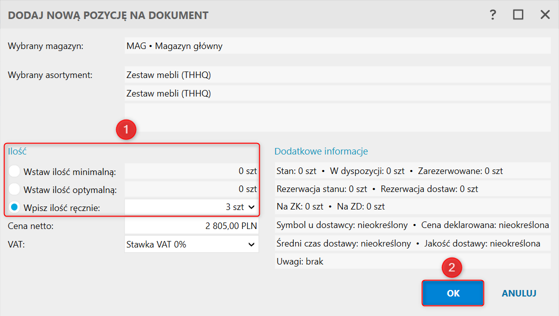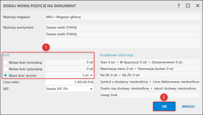 3. Określić ilość i zatwierdzić przyciskiem OK.