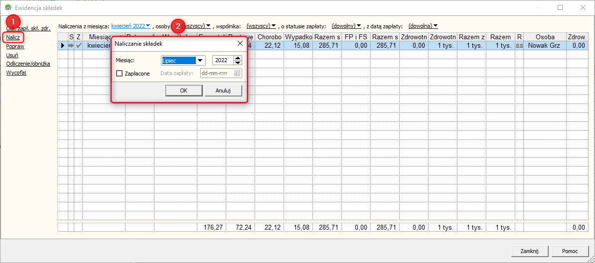 ​Aby składki wspólnika pojawiły się na zaliczce miesięcznej PIT, oraz w ewidencji odliczeń i doliczeń, wymaganym jest utworzenie ich w Ewidencji składek. W tym celu należy: