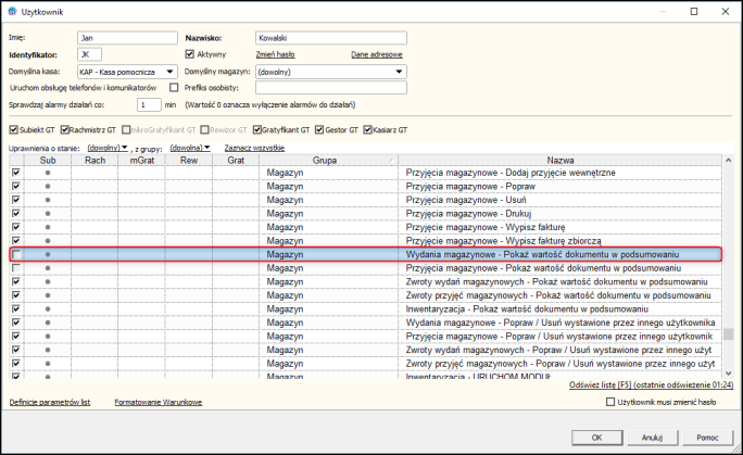 Subiekt GT – Jak zablokować pracownikowi widok wartości dokumentów magazynowych?